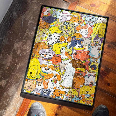 Dopo il successo del nostro puzzle con gatti, non potevamo fermarci lì. Per mesi abbiamo lavorato a Cagnolini Birichini, un puzzle da 500 pezzi composto da cagnolini buffi e divertenti (si, birichini si scrive con una "s" se è ciò che stai chiedendo).